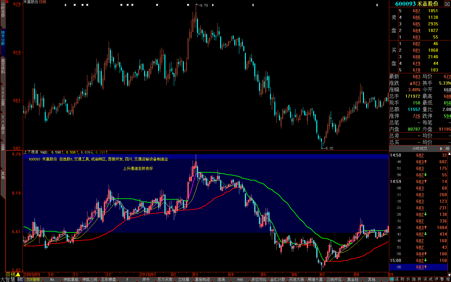 - DRAWTEXTABS(320,40,'上升通道走势良好'),COLOR00FFFF;