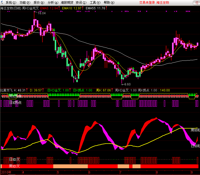 - DRAWTEXT(CURRBARSCOUNT=115,-10,'周KD叉'),COLORFFFFFF;