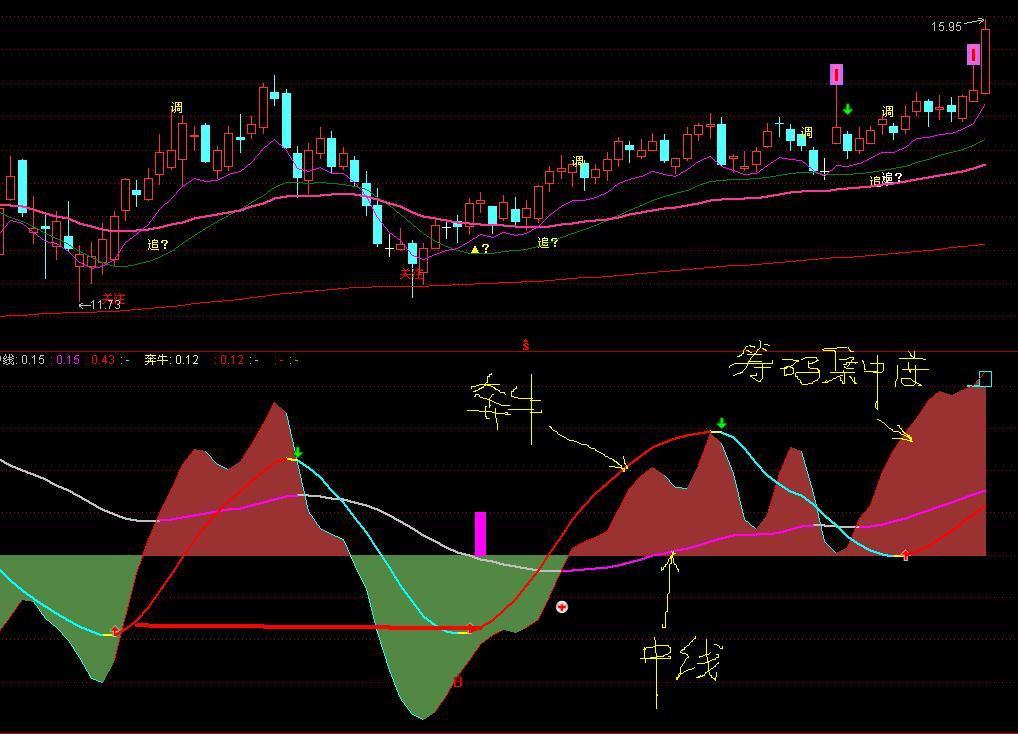 用法:1、中线(灰色与洋红色线)向上,线呈洋红色可持股,转灰色注意,筹码集中度为红色时,可持有,否则持币。