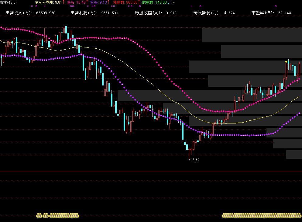 相关简介:通达信多空均线副图源码 可以配合看趋势! MA5:=MA(CLOSE,53); E2:=C=REF(MA5,1); DRAWICON(E2,11,9); {公式在线提供: www.gszx.com.cn }