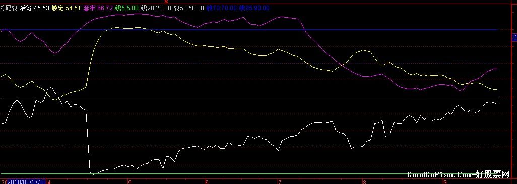 相关简介:通达信筹码线副图源码 活筹:100*(WINNER(1.1*C)-WINNER(0.9*C)); 锁定: EMA(100-活筹,5); 套牢:EMA(100*(1-WINNER(CLOSE)),8); 线5:5,LINETHICK1; 线20:20, POINTDOT; 线50:50, LINETHICK1; 线70:70, POINTDOT; 线95:90, LINETHICK1; {公式在线提供: www.gszx.com.cn }