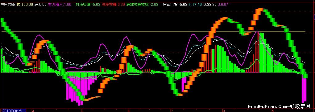 庄家出货:IF(现价<0,现价,0),COLOR00FF00,LINETHICK0;