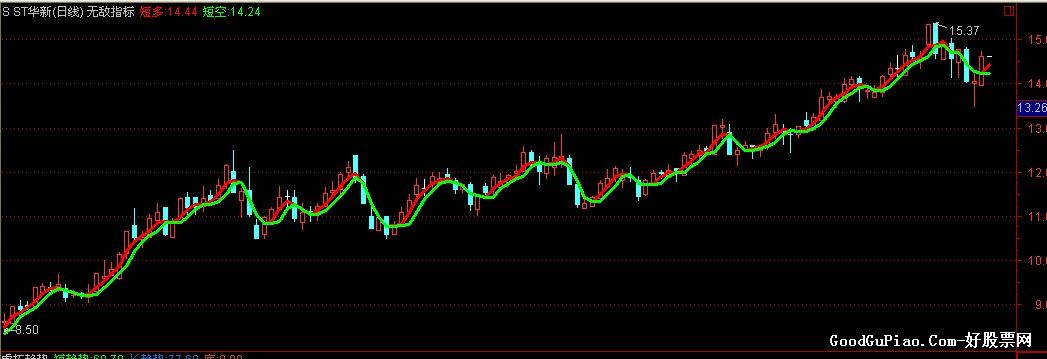用法:红线从绿上上出来,赚大钱的机会来了,简单说变双线买入赚线,变单绿线无条件走人!