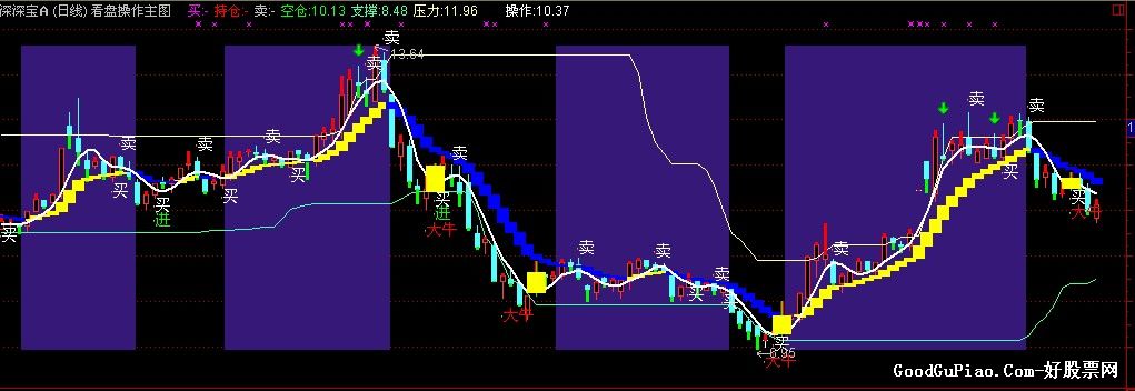 买:IF(CROSS(指导线,界) OR CROSS(买线,卖线),C,DRAWNULL),COLORMAGENTA,NODRAW;