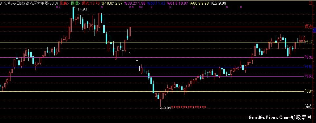 见顶:IF(H>=REF(A0,BARSLAST(CROSS(A1X,0)))*1.3,REF(A0,BARSLAST(CROSS(A1X,0)))*1.3,DRAWNULL),COLORGREEN,CIRCLEDOT;