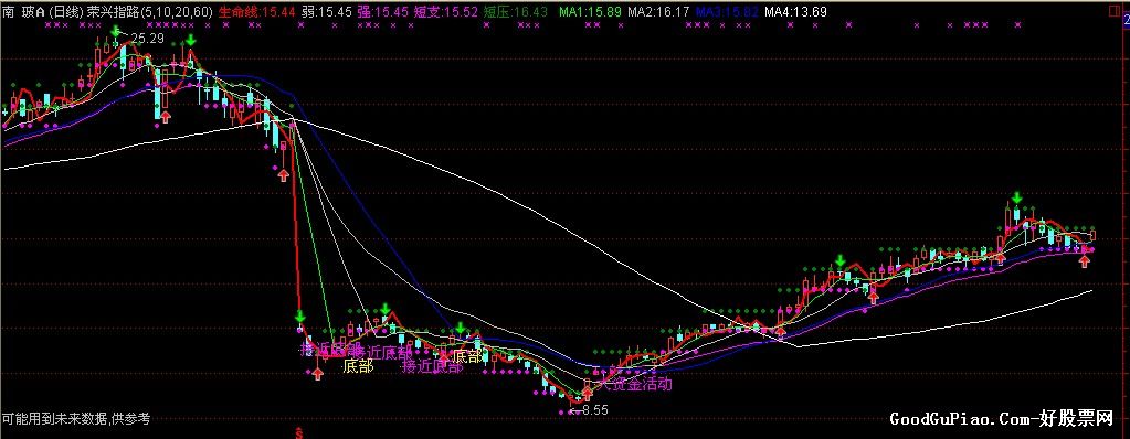 强:IF(SMA(LOW,21,2)*1.01>=REF(SMA(LOW,21,2)*1.01,1),SMA(LOW,21,2)