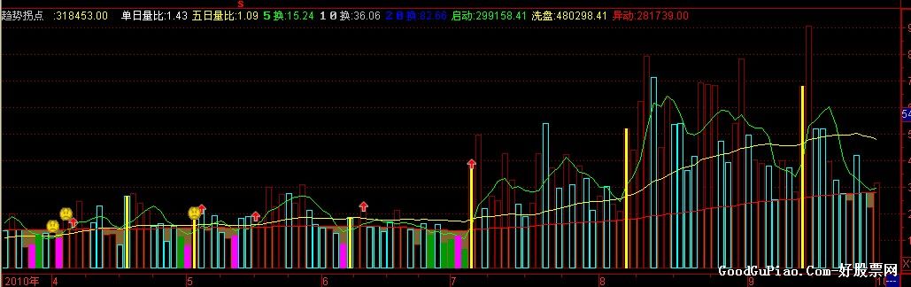 随着主力洗盘的几天,股价下跌,对应的成交量柱持续萎缩,一般缩在35和甚至135日均量线之下,如果说放量主力可对倒,有虚假行为,那么我告诉你一个秘诀:缩量是自然行为,是所有指标中最准的!!这时候5日均量线向下靠近或者下穿35日均量线,洗得很凶的甚至5日均量线下穿了135日均量线,这时候我告诉你,机会真的来了!!你要瞪大眼睛观察,当你发现突然有一天放大的成交量柱能够接触到5日均量线甚至越过5日均量线,5日均量线掉头上穿135和35日均量线的时候,最佳的秘密买点出现了,这时候,你就像一头观察猎物很久的狮子一样,全仓杀入,成功达到99%以上,接下来享受飙升的快感!