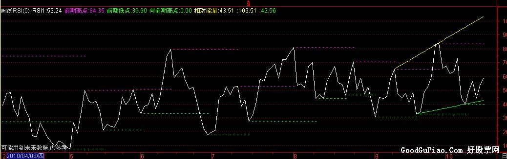 前期高点:REF(RSI1,BARSLAST(D1)),COLORFF00FF,NODRAW;