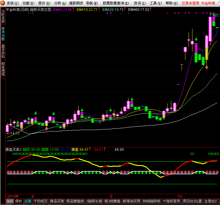 - EMA10:MA(C,10),COLOR00FFFF,LINETHICK1;