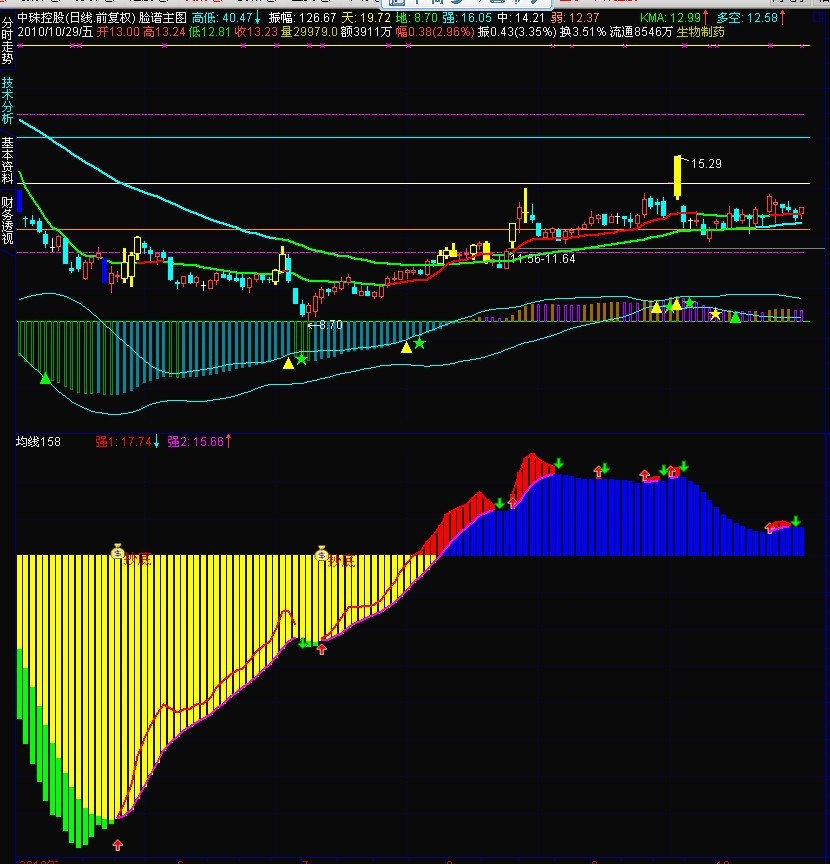 - 绿柱消失买入:STICKLINE(DIFF<0,0,DIFF,2,0),COLOR00FF00;