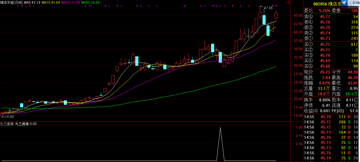 相关简介:通达信追涨金牛成功率95%的指标选股副图源码 {公式在线提供: www.gszx.com.cn } 个人自创指标 成功率很高 大家分享多提宝贵意见 源码如下: C/C++ Code 复制内容到剪贴板 A1:=OPENREF(CLOSE,1); A2:=CLOSE/REF(CLOSE,1)1.03; A3:=MA(CLOSE,30)/REF(MA(CLOSE,30),1)1.005; A4:=BETWEEN((CLOSE/MA(CLOSE,30)),1,1.05); A5:=