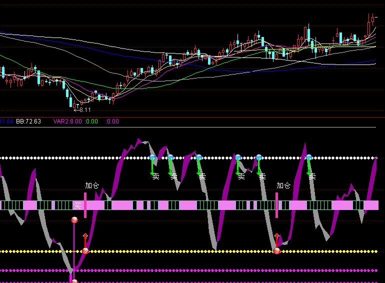 - DRAWTEXT(CROSS(AA,20),62,'加仓');