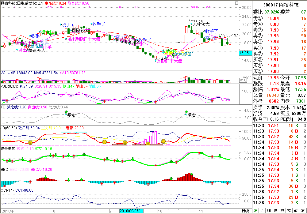- DRAWTEXT(CROSS(MA(CLOSE,5),MA(CLOSE,10)),L*0.92,'可出手'),COLORFF00FF;