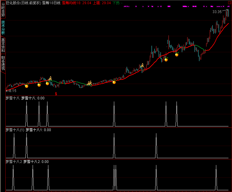 雪舞均线18:MA(C,18),COLORRED,LINETHICK2;
