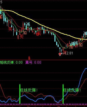 短线反弹:IF(CROSS(个股,9),50,0),STICK,LINETHICK3,COLOR00FF00;