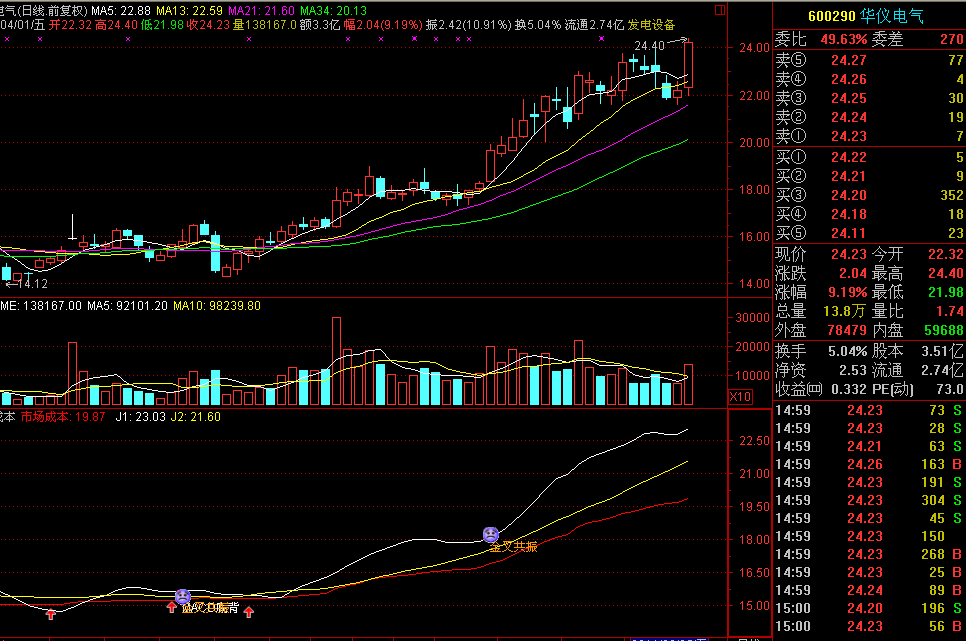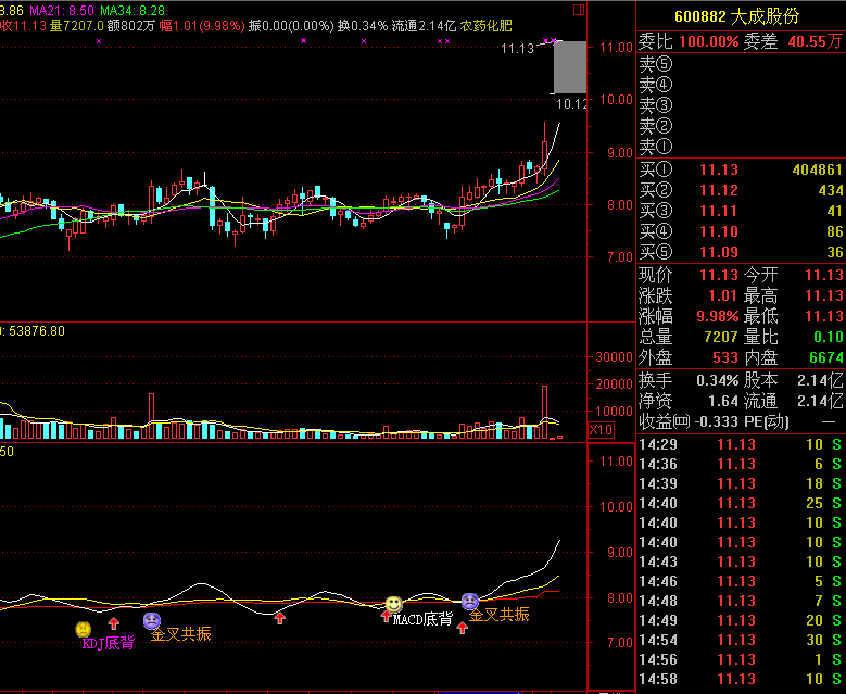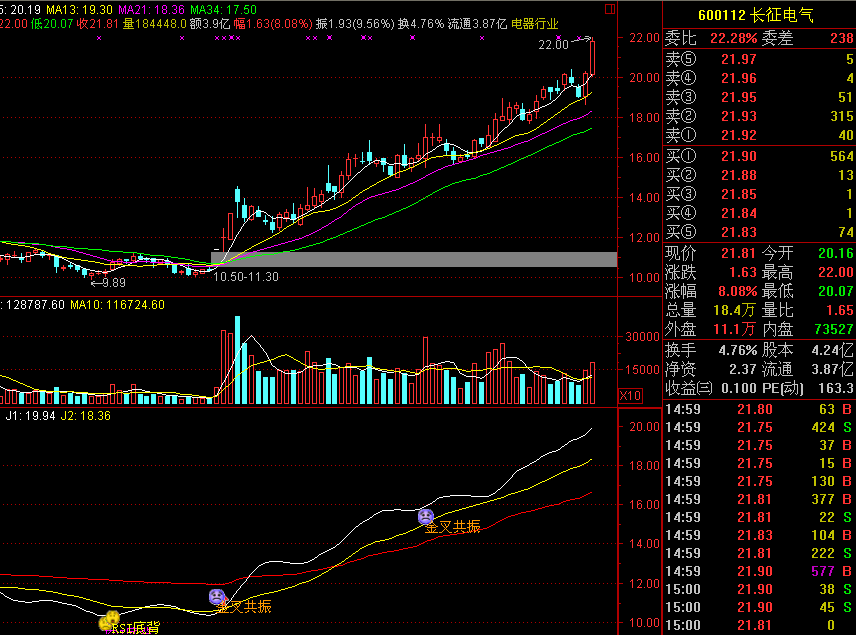 相关简介:通达信金叉共振指标源码主升来临 市场成本:DMA(AMOUNT/V/100,V/CAPITAL),COLORRED; DRAWICON(CROSS(C,市场成本),L-0.20,1);{1号图标显示红脸} {PARTLINE(市场成本,市场成本REF(市场成本,1),RGB(255,0,0),NOT(市场成本REF(市场成本,1)),RGB(0,0,255),1,RGB(0,0,255)),LINETHICK2;} J1:MA(C,7),COLORWHITE; J2:MA(C,21),COLOR
