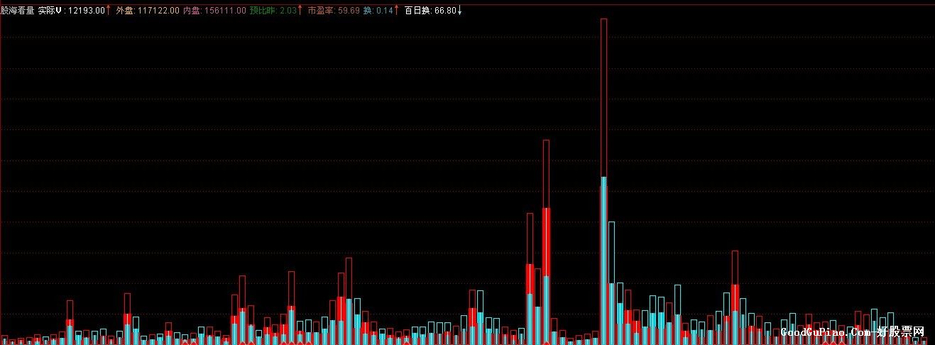 相关简介:通达信股海看量源码副图贴图 {股海看量} 实际V: VOL,LINETHICK0 ; 外盘: DYNAINFO(23),LINETHICK0 ; 内盘: DYNAINFO(22),LINETHICK0 ; TT:=240/FROMOPEN; 比:=TT; 昨V:=REF(V,1); 预比昨:实际V*TT/昨V,LINETHICK0; 市盈率 :DYNAINFO(39) ; 换:V/CAPITAL*100,LINETHICK0; 百日总:=SUM(V,100); 百日换:百日总/CAPITAL*1