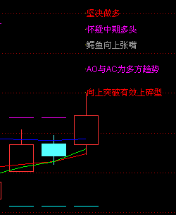 相关简介:通达信混沌操作法按说明操作 源码: VAR1:=(H+L)/2; {公式在线提供: www.gszx.com.cn } AO:=SMA(VAR1,5,1)-SMA(VAR1,34,1),COLOR6699CC; AC:=SMA((AO-SMA(AO,5,1)),5,1),COLOR6699CC; X1:=AOREF(AO,1) AND ACREF(AC,1); X2:=AOREF(AO,1) AND ACREF(AC,1); Y:=(H+L)/2; RED:=SMA(Y,8,1); R2:=RE