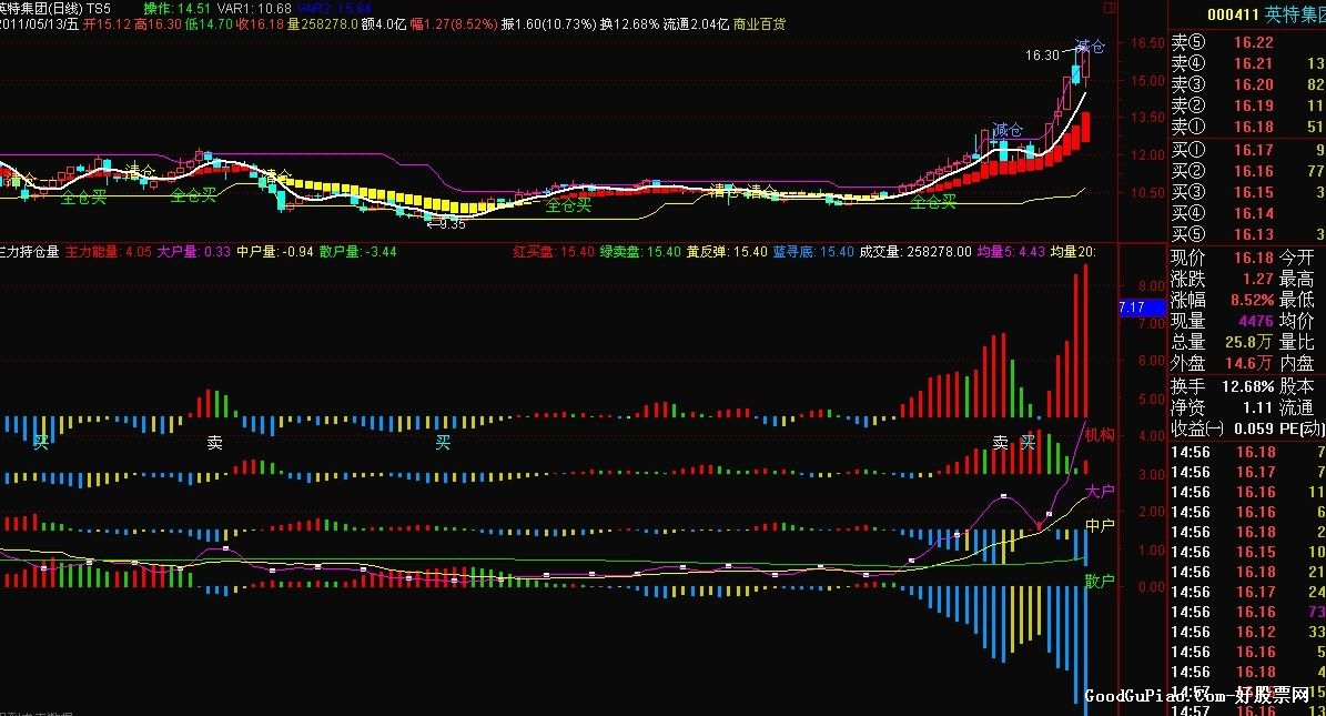 操盘2:STICKLINE(中户量>=0 AND 中户量>=REF(中户量,1),1.5,1.5+中户量,1,0),COLORRED;