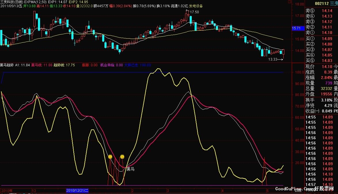 黑马线:EMA(A1,5),LINETHICK2,COLOR6600FF;