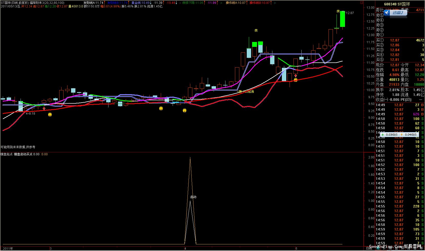 放量2:=V0<=(3.8*V1); { 今天的量在昨天量的四倍范围内}