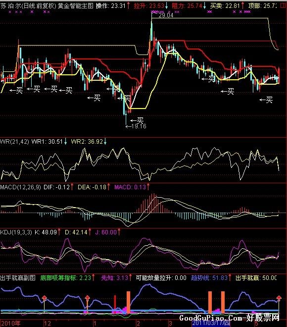 相关简介:通达信出手就赢选股预警公式源码贴图 {公式在线提供: www.gszx.com.cn } 《出手就赢》选股预警公式: GJTJ1:=100*(C-LLV(L,5))/(HHV(C,5)-LLV(L,5)); GJTJ2:=100*(C-LLV(L,10))/(HHV(C,10)-LLV(L,10)); GJTJ3:=100*(C-LLV(L,20))/(HHV(C,20)-LLV(L,20)); GJTJ4:=100*(C-LLV(L,30))/(HHV(C,30)-LLV(L,30)); A: