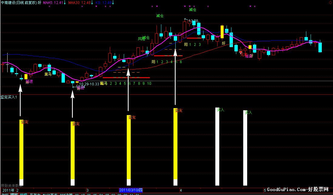 相关简介:通达信坚定买入源码副图 {公式在线提供: www.gszx.com.cn } VAR1:=BACKSET(REF(HIGH,2)=HHV(HIGH,5),3); VAR2:=CROSS(VAR1,0.9); VAR3:=BACKSET(REF(LOW,2)=LLV(LOW,5),3); VAR4:=CROSS(VAR3,0.9); VAR5:=IF(VAR2,HIGH,IF(VAR4,LOW,0)); VAR6:=BACKSET(REF(HIGH,2)=HHV(HIGH,5) AND LOWRE