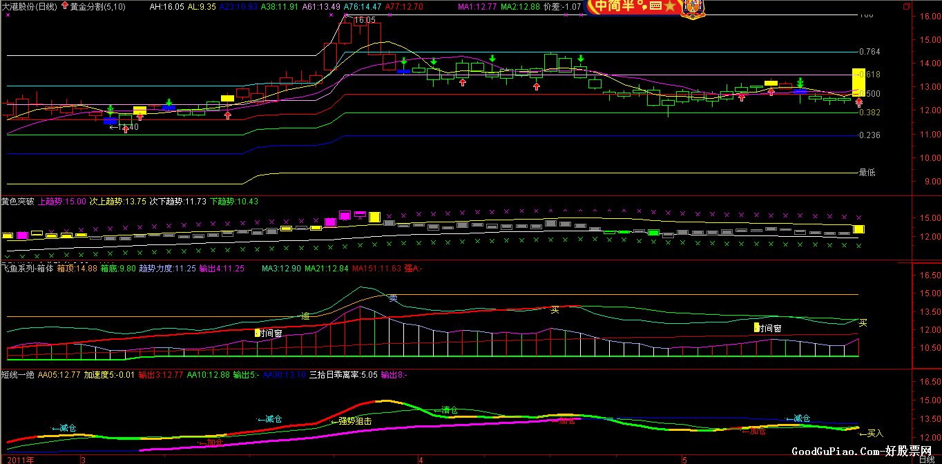 相关简介:通达信飞鱼系列箱体 飞鱼系列箱体 (源码 副图 贴图) {公式在线提供: www.gszx.com.cn } 源码: 箱顶:HHV(MA((LOW+HIGH+CLOSE+O)/4,5),58),COLOR00AAFF; 箱底:LLV(MA((LOW+HIGH+CLOSE+O)/4,6),88),COLORGREEN,LINETHICK2; VAR2:=EMA((HIGH+LOW+CLOSE)/3*(HHV(HIGH,10)-CLOSE)/(HHV(HIGH,10)-LLV(LOW,10))*20