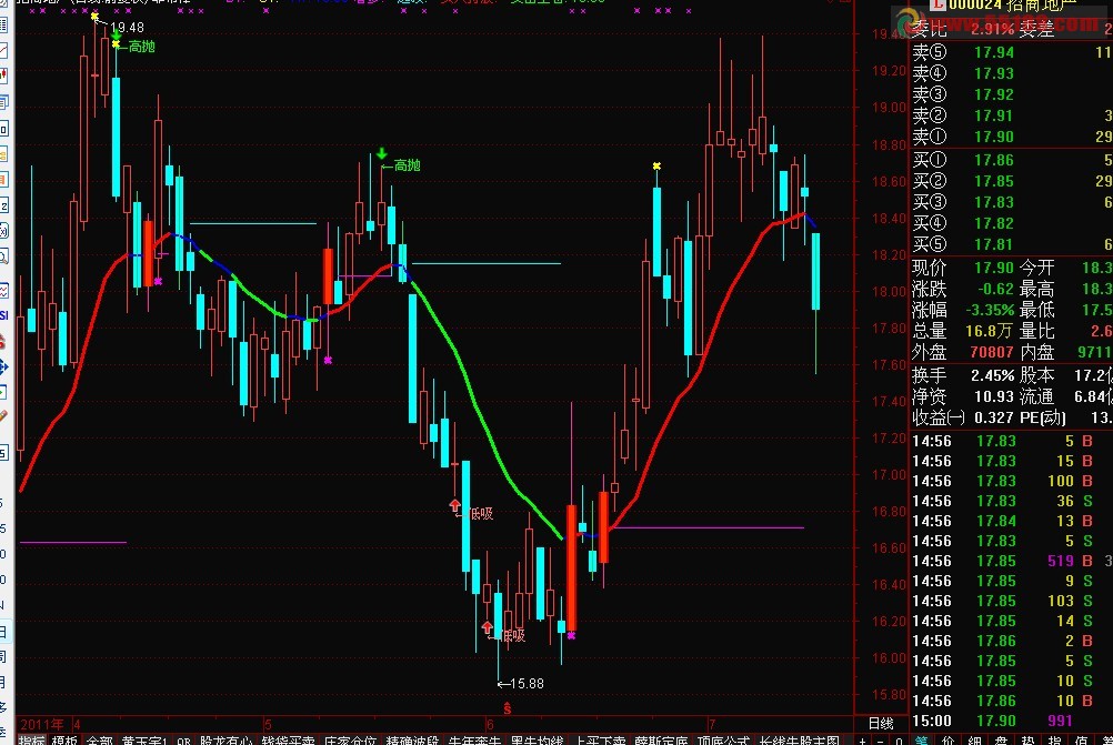 - DRAWICON(卖出<0,H+0.05,2); 买线:=EMA(CLOSE,2);