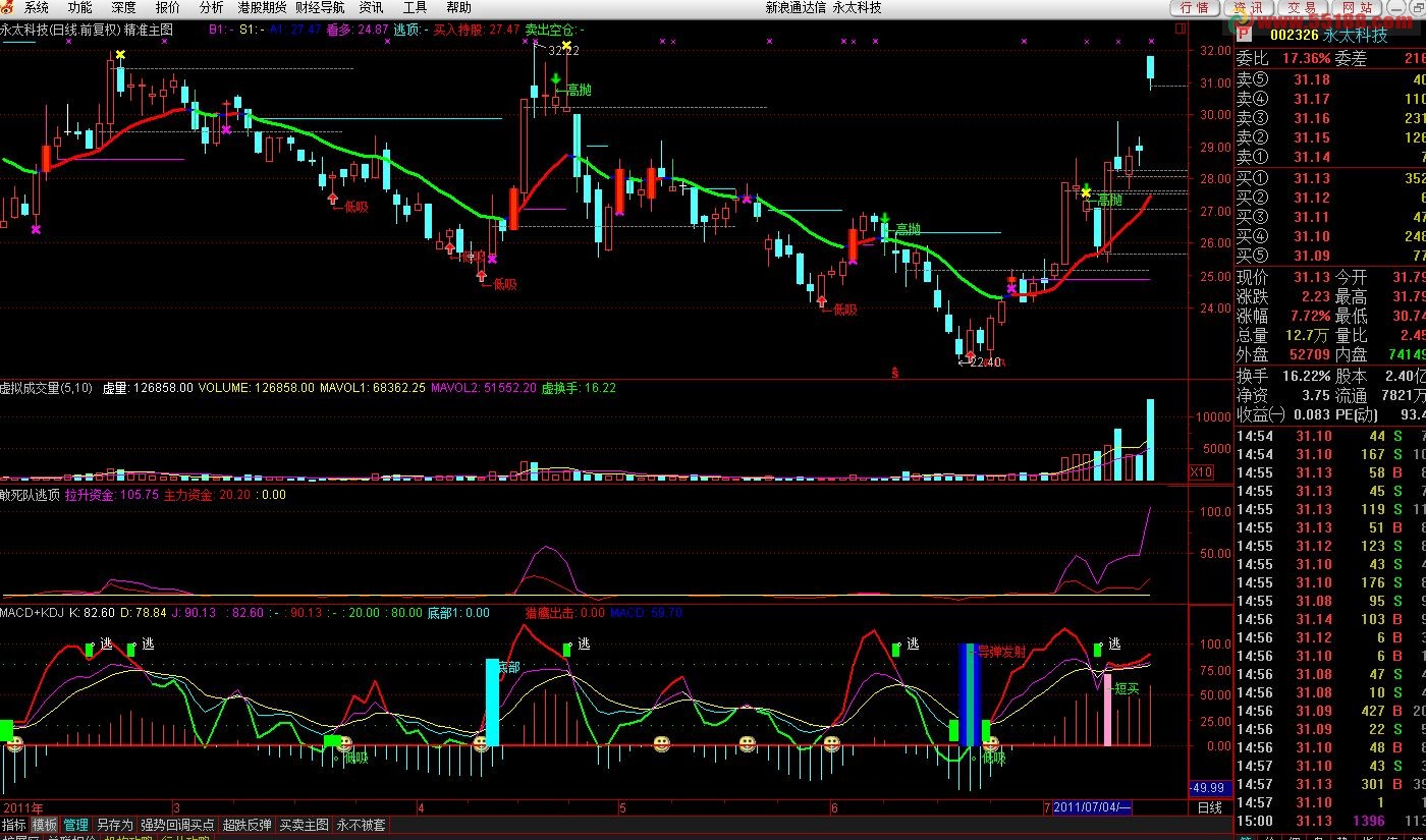 - DRAWTEXT(CROSS(J,(0 - 5)),(0 - 4),'。低吸'),COLORGREEN;
