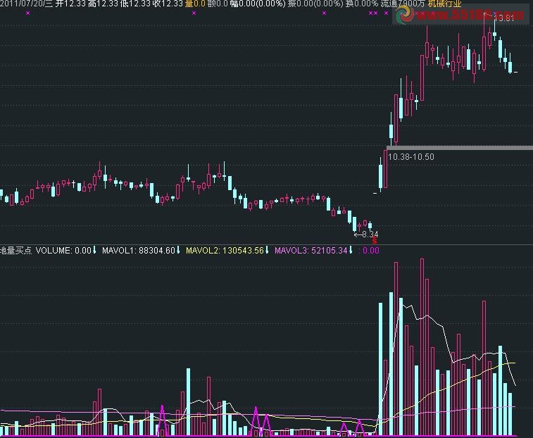 经典经验:在一个明显的趋势中,股价在下跌的过程中成交量将逐渐萎缩,当成交量不能再缩小之时,股价将见阶段性底部;股价在上升的过程中成交量将逐渐放大,当成交量不能再放大之时,股价将见阶段性顶部。(这是基本规律,当然也有例外,如高控盘股缩量上涨)。{公式在线提供:www.gszx.com.cn}