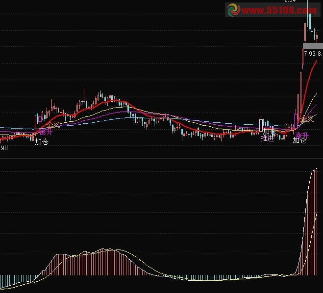 4.变红买入,变蓝卖出,长线趋势变红,股价一路走高。