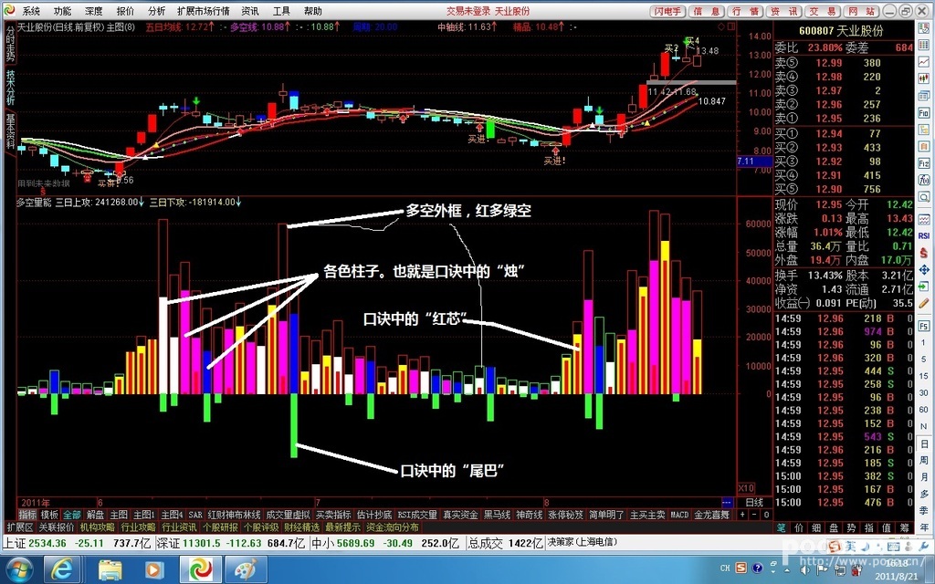 相关简介:通达信能量多空逃顶建仓指标源码用法 用法:操作口诀: 选好股,挑好庄;等大势,看起航。 跟上了,看着庄;他撤退,我清仓。 破趋势,急离场;等着跌,莫手痒。 白色烛,红芯长,庄家找底在振荡,俺也伺机建点仓。 {公式在线提供: www.gszx.com.cn } 黄色烛,红芯长;庄家进货强,俺也进货等起航。 粉色烛,红芯长,庄家高抛低吸操作忙,俺也去逐浪。 蓝色烛,红芯短,巨量绿尾长,庄家撤退,俺也清仓。 巨量绿,蓝烛长,趋势破,急离场;等着跌,莫手痒。
