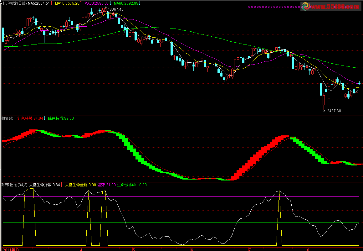 相关简介:通达信分时指标顶部出仓源码 {顶部出仓(监测大盘顶部)无未来 N 1 100 34 M 1 100 3} N:=34;{公式在线提供: www.gszx.com.cn } M:=3; 大盘生命指数: EMA(100*(CLOSE-LLV(LOW,N))/(HHV(HIGH,N)-LLV(LOW,N)),M)/4; 大盘生命量能:IF(大盘生命指数23.16,大盘生命指数,0); 强势: 21; 生命分水岭: 10; 此公式可以可以用于大盘和个股分时,准确无未来函数,适合盘中高抛低吸,第一次出现信