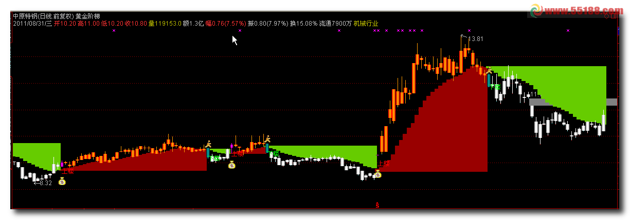 相关简介:通达信黄金阶梯指标源码改进版源码主图 黄金阶梯{公式在线提供: www.gszx.com.cn } 可用在大智慧老版和通信达