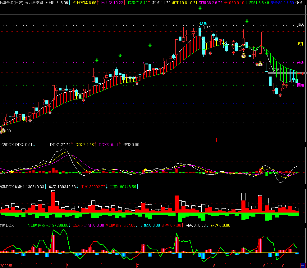 - M日内翻红天:COUNT(进出量>0,M),COLORRED;