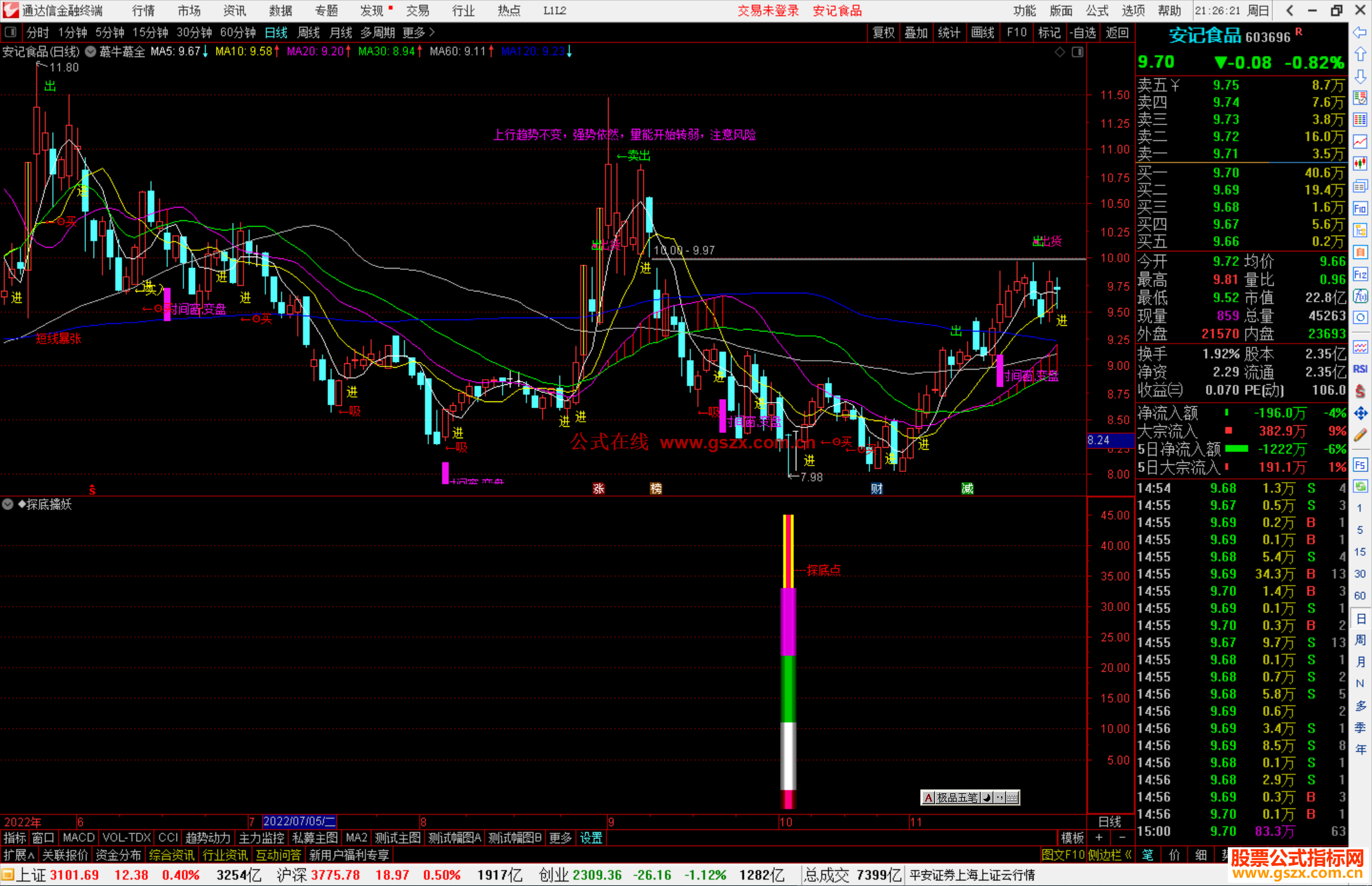 STICKLINE(IF(探底点,-120,0),+33,0,5,0),COLORBB00BB;