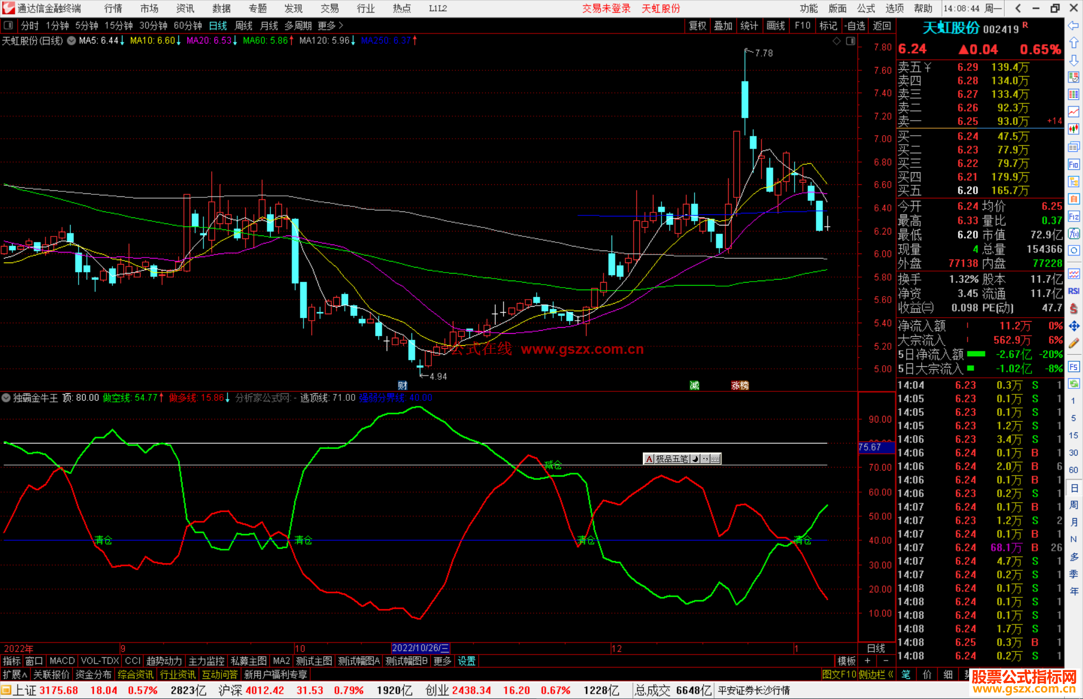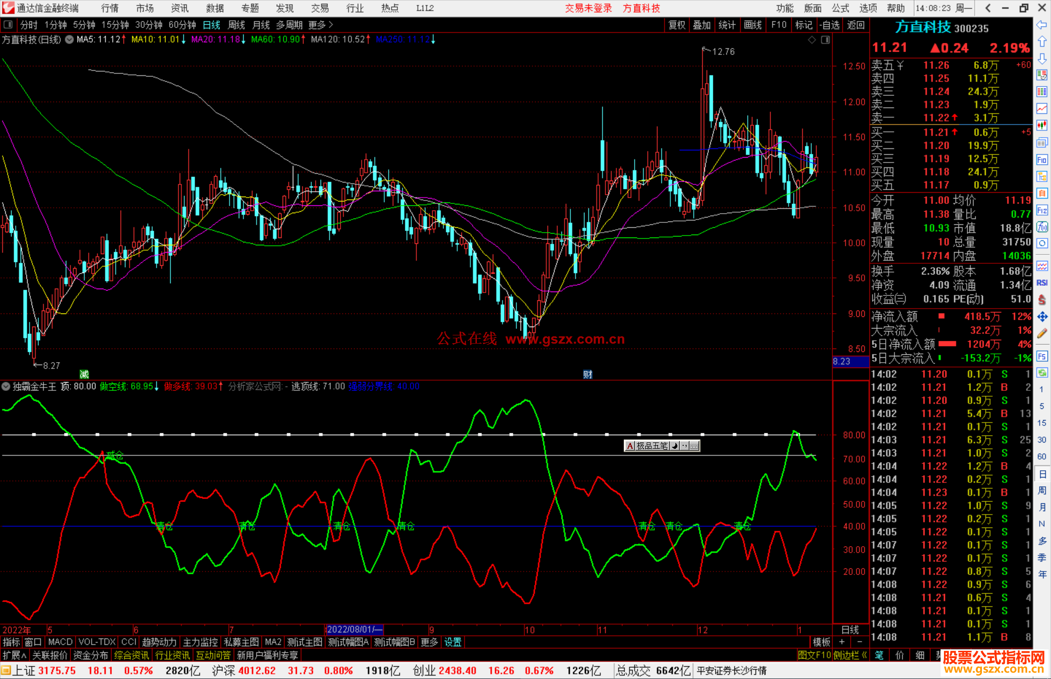 3、红线进入强势区说明该股票庄家控盘,股票即将进入拉升阶段,反之如果绿线向上掉头,说明庄家洗盘或者是出局,我们要赶紧减仓或者清仓。