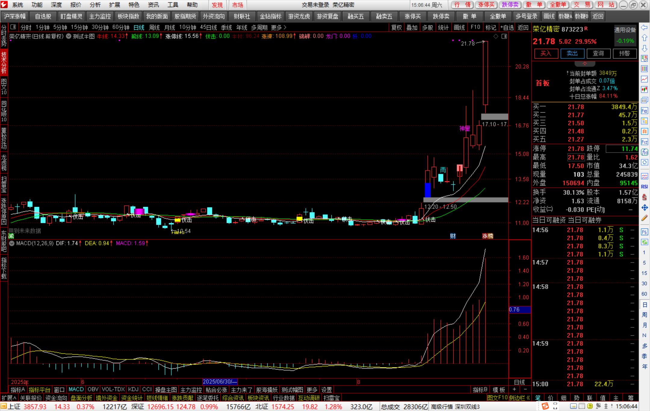 相关简介:DRAWKLINE(H,O,L,C); MID:=(3*CLOSE+LOW+OPEN+HIGH)/6; 牛线:(20*MID+19*REF(MID,1)+18*REF(MID,2)+17*REF(MID,3)+16*REF(MID,4)+15*REF(MID,5)+14*REF(MID,6)+13*REF(MID,7)+ 12*REF(MID,8)+11*REF(MID,9)+10*REF(MID,10)+9*REF(MID,11)+8*REF(MID,12)+7*REF(MID,13)+6*R