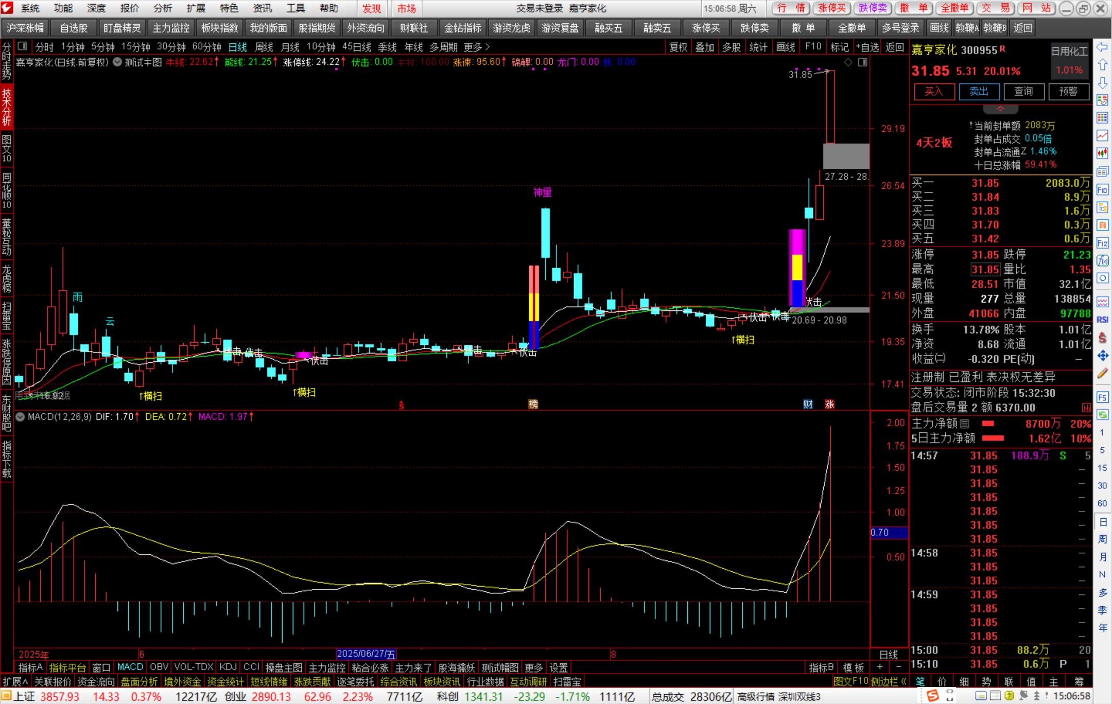 牛线:(20*MID+19*REF(MID,1)+18*REF(MID,2)+17*REF(MID,3)+16*REF(MID,4)+15*REF(MID,5)+14*REF(MID,6)+13*REF(MID,7)+