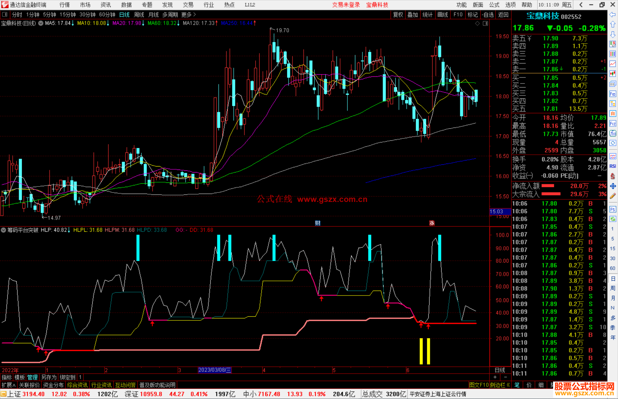 DRAWICON(ABS(HLPL-HLPD)<1 AND REF(HLP,1)=REF(HLPD,1) AND HLP>HLPD AND GG<60,HLPD-0.02,1);