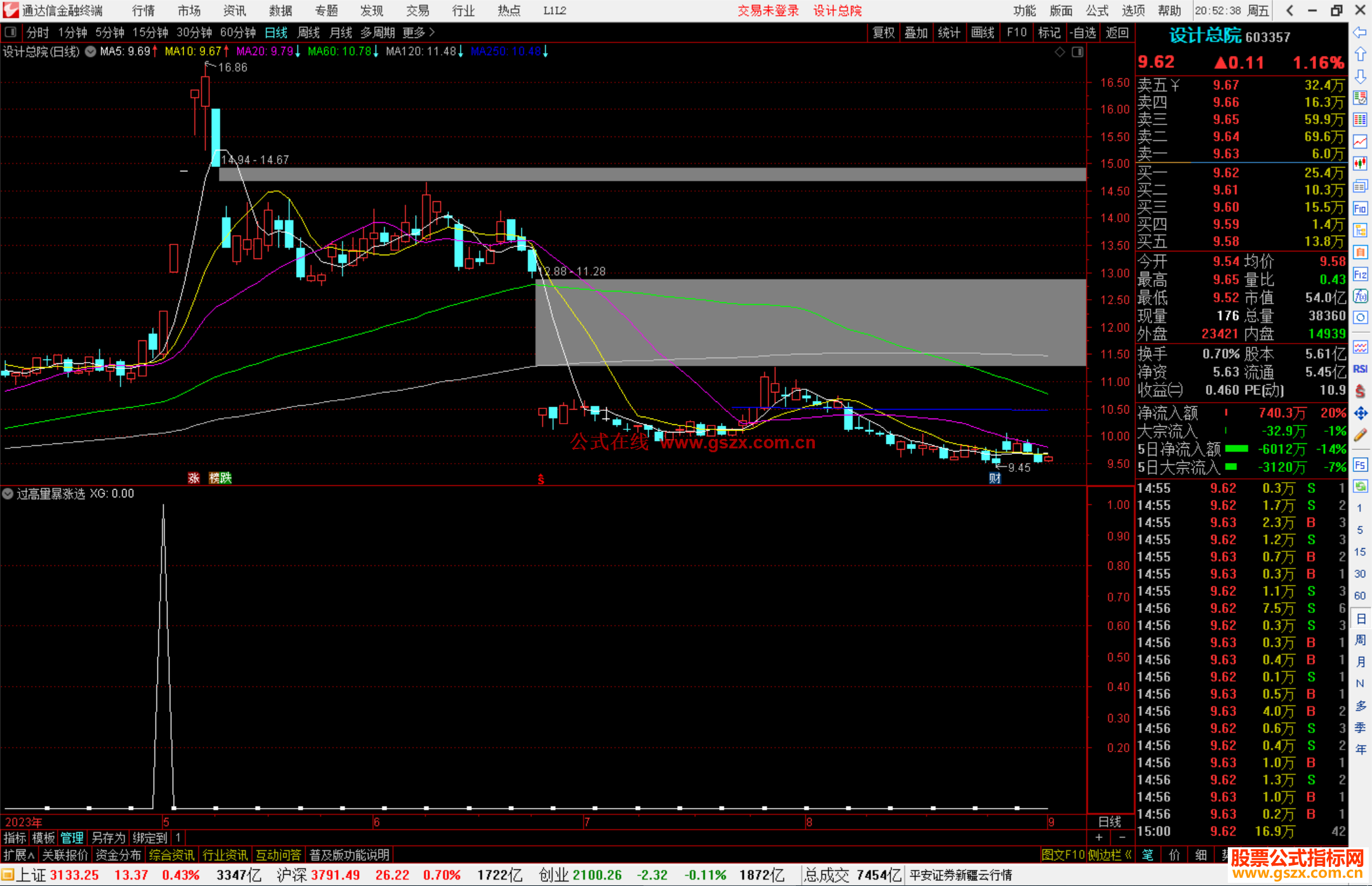 相关简介:Q1:=REF(C,1)REF(O,1) AND REF(V,1)REF(V,2); Q2:=REF(C,1)*1.1REF(O,1); Q0:=Q1 OR Q2; Q3:=MA(C,5)MA(C,10) AND MA(C,10)MA(C,20) AND MA(C,20)MA(C,30) AND MA(C,30)MA(C,60); Q4:=REF( vol ,1)1; Q5:=REF(O,1)REF(MA(C,5),1); Q6:=REF(O,1)=HHV(REF(MAX(C,O),1),60)