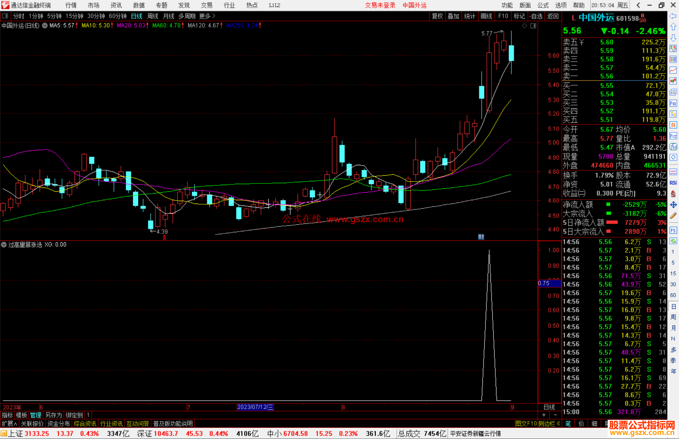 Q5:=REF(O,1)>REF(MA(C,5),1);