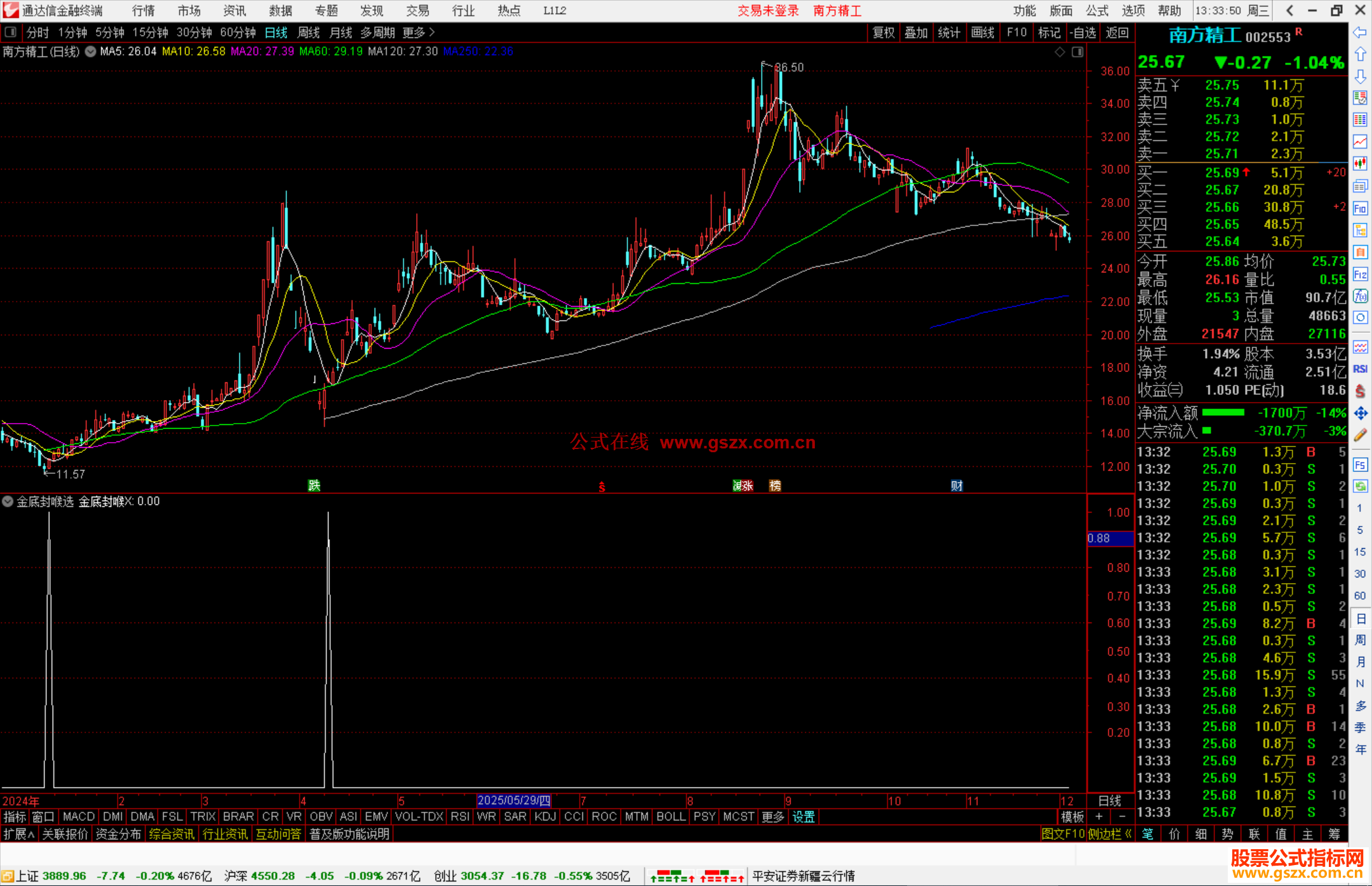 XG2:=(HIGH-MAX(CLOSE,OPEN))/(MIN(CLOSE,OPEN)-LOW)<=0.03;