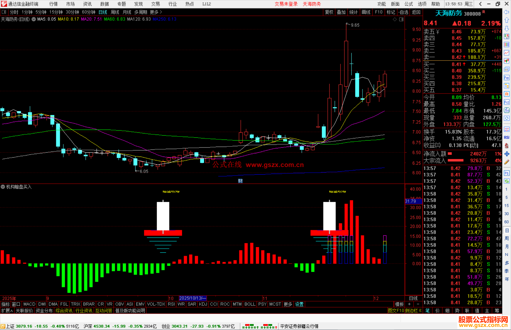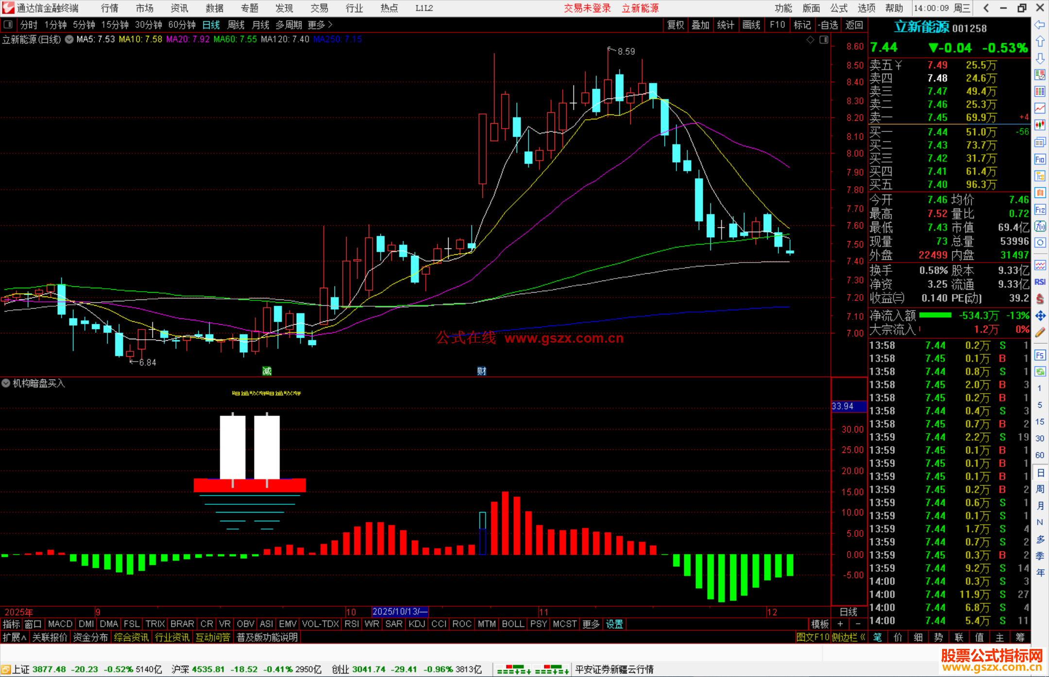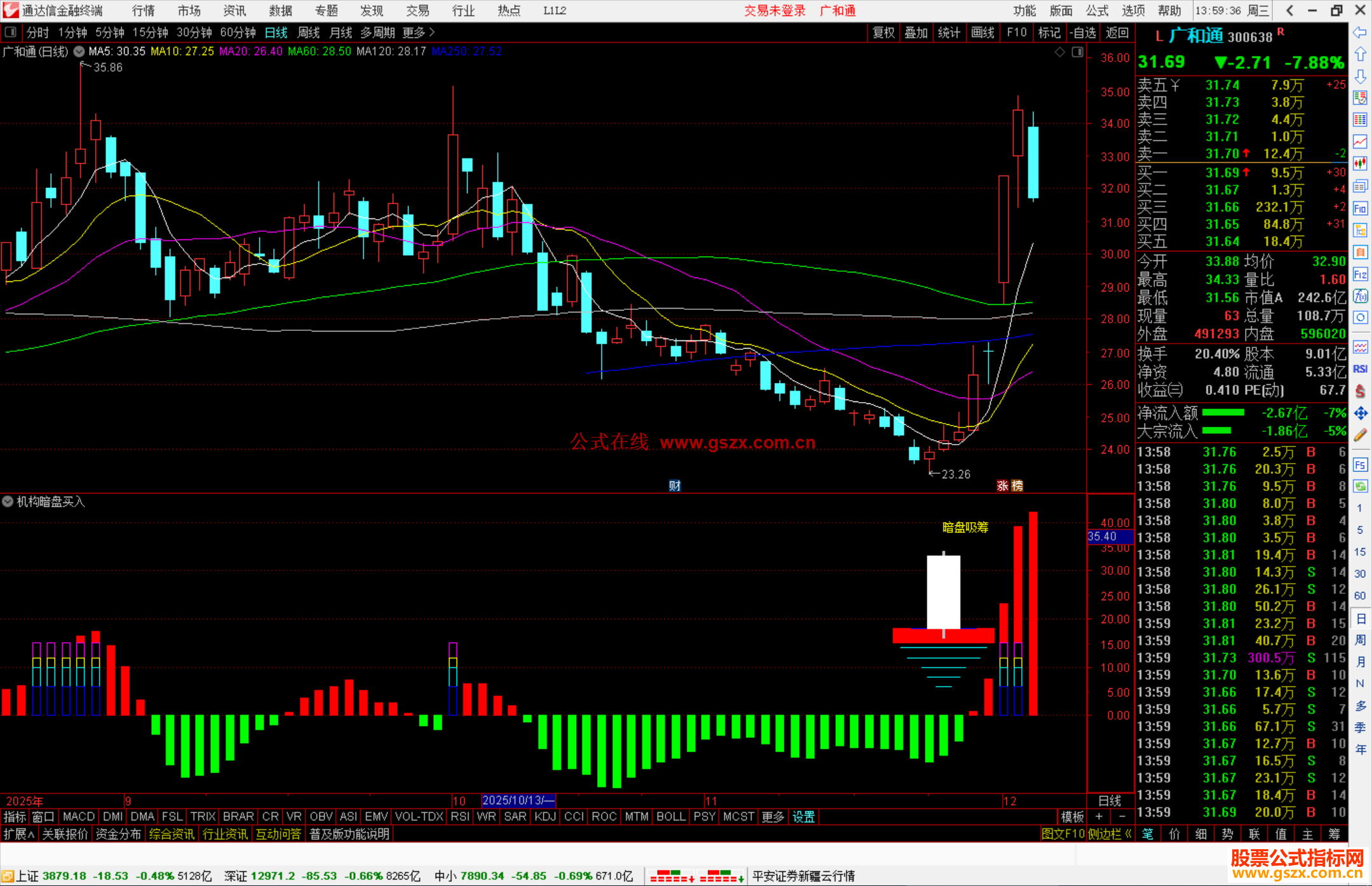 STICKLINE(机构暗盘 < 0, 机构暗盘, 0, 2, 0), COLORGREEN;