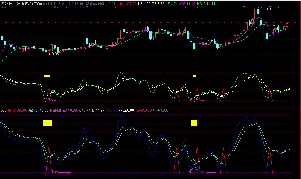 接下来就可以写0、20、50、80、100、K\D\J\信号等在叠加副图输出了