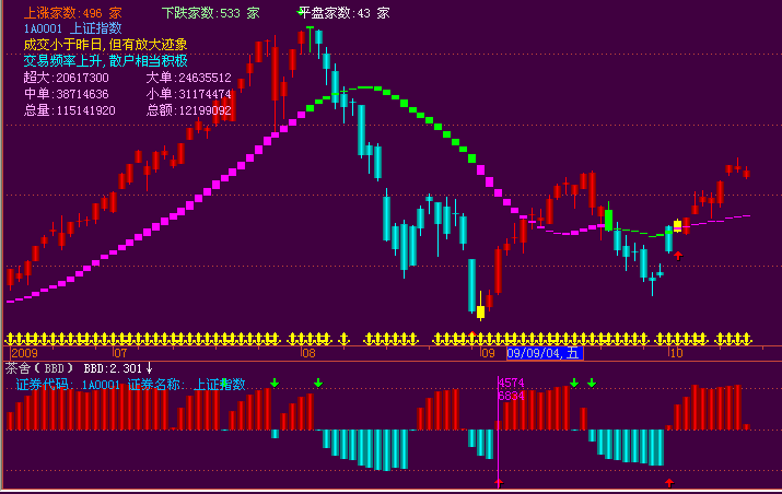 相关简介:一点时间以来,一个名字叫BBD的指标,被指标贩子们炒的火热。 其目的只有一个,骗取钱财。 怎么能骗到广大散户呢? 1、你不知道他的数据是怎么来的 2、你的却对他的指标感兴趣,怎么就会那么准? 3、给你一个简单的源码,给你一个自定义数据文件,让你导入。以后的数据怎么弄到? 这就是骗子的高明之处,你不是想要数据吗?呵呵,对不起、拿钱来! 今天受千钧老师委托,经老师允许,现把老师的茶舍BBD源码发出。 目的是让大家看看,这个神乎其神的东西,你也能轻而易举的做出来! 图片是飞狐的,大智慧和通达信就不贴图