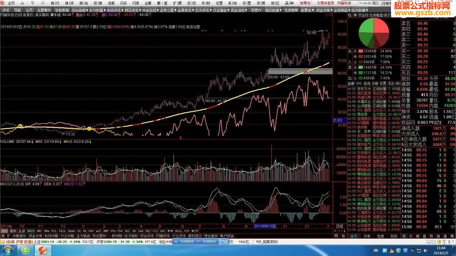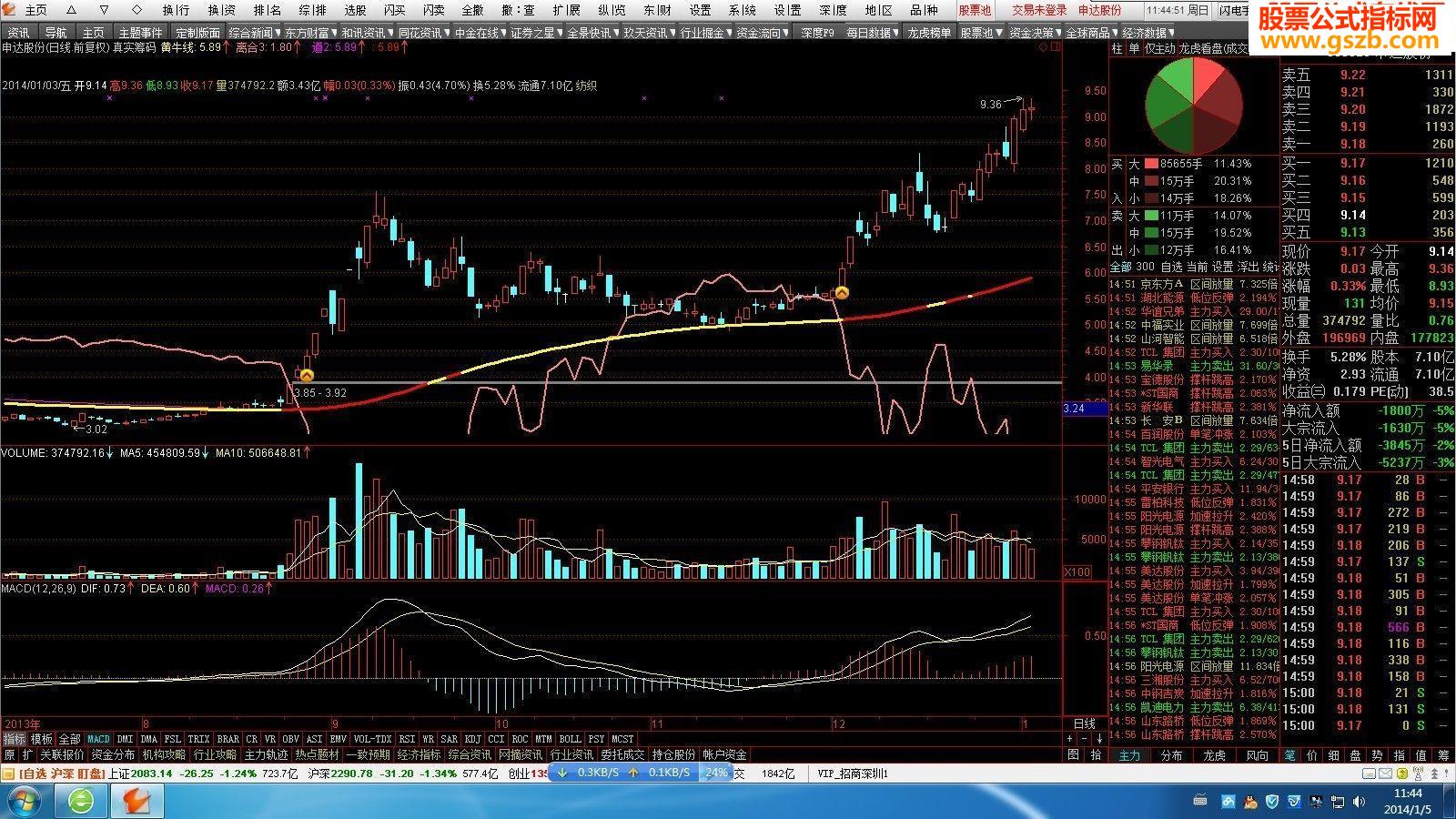 黄线:=(EMA(VAR9,3)+EMA(VAR9,6)+EMA(VAR9,12)+EMA(VAR9,24))/4,COLORYELLOW,LINETHICK1;