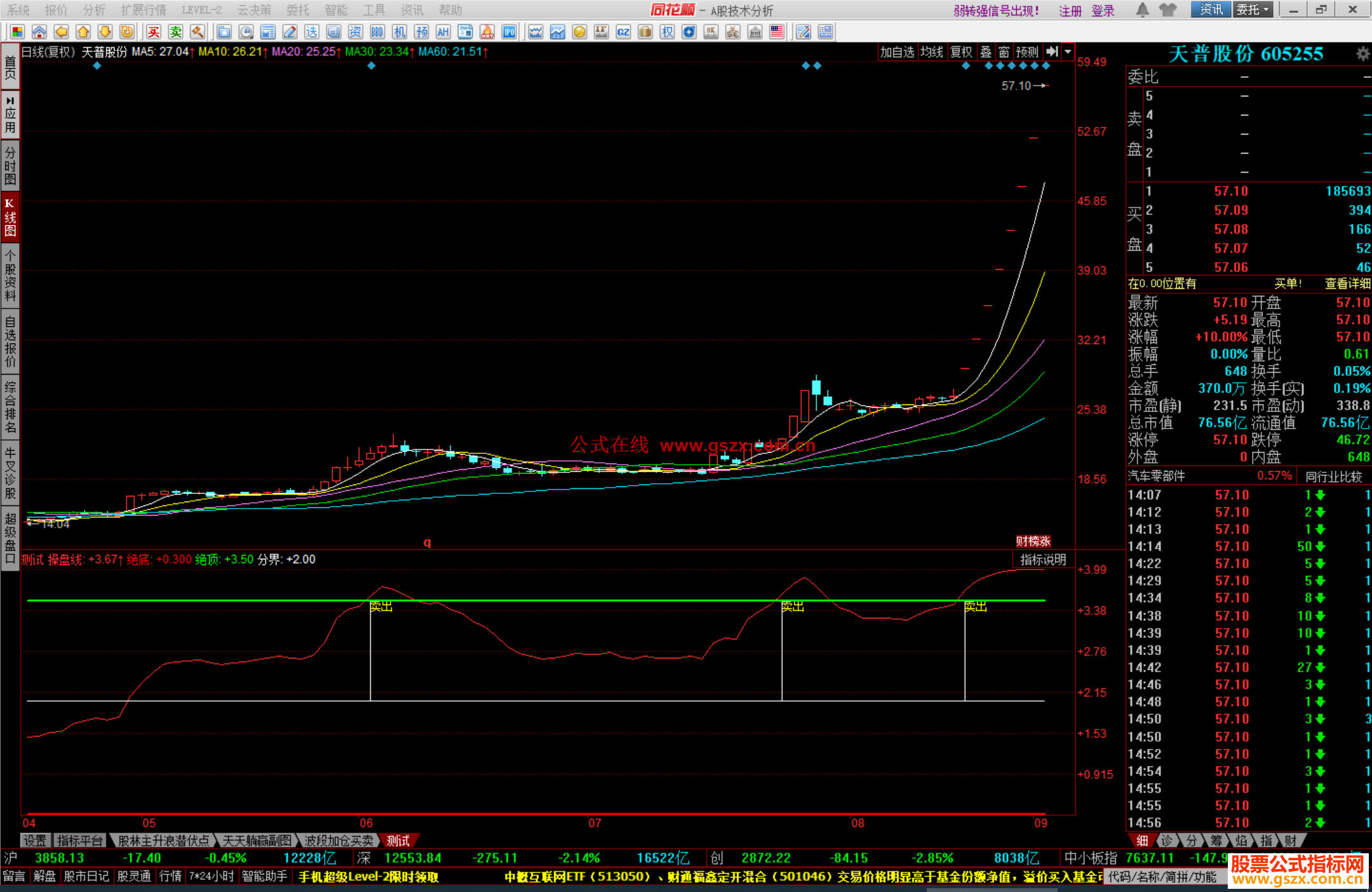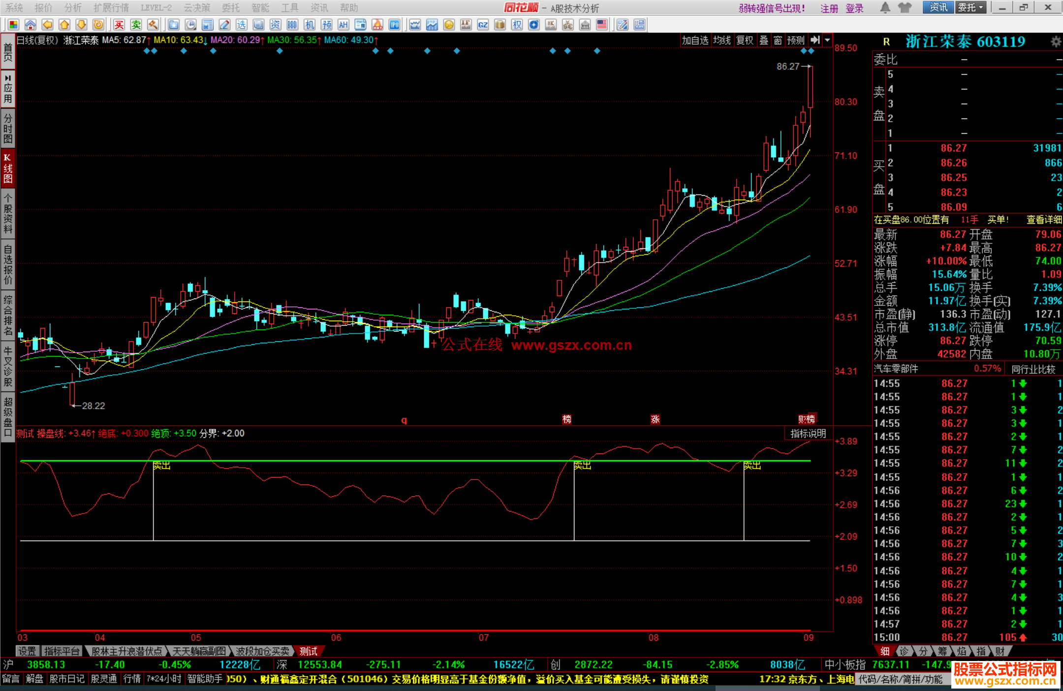 当出现黄色柱+粉色柱 的时候,说明主力有资金盘中进场抄底,这时候再加一成仓位,这就是低吸操作。当出现逃顶字眼 就是高抛,当出现逃顶加蓝柱 的时候说明当天到了分时压力位了,这个地方可能会突破也可能突破不了,这个时候注意看分时线的价格跟分时成交量是否形成量价背离的形态, 就是股价一直高,但是成交量却一直低,就是背离信号,注意逢高抛